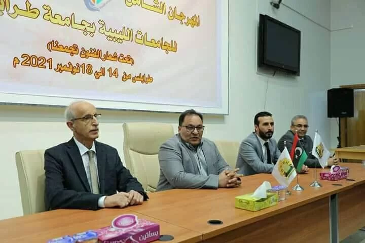 ﺍﺧﺘُﺘﻢ ﺑﺠﺎﻣﻌﺔ ﻃﺮﺍﺑﻠﺲ ﻣﻬﺮﺟﺎﻥ " ﺍﻟﻔﻨﻮﻥ ﺍﻟﺘﺸﻜﻴﻠﻴﺔ " ﺍﻟﺬﻱ ﺃﻗﻴﻢ ﺗﺤﺖ ﺷﻌﺎﺭ "ﺍﻟﻔﻨﻮﻥ ﺗﺠﻤﻌﻨﺎ" ﺑﺤﻀﻮﺭ ﻣﻌﺎﻟﻲ ﻭﺯﻳﺮ ﺍﻟﺘﻌﻠﻴﻢ ﺍﻟﻌﺎﻟﻲ ﻭﺍﻟﺒﺤﺚ ﺍﻟﻌﻠﻤﻲ ﻭﻣﻌﺎﻟﻲ ﻭﺯﻳﺮ ﺍﻟﺜﻘﺎﻓﺔ ﻭﺍﻟﺘﻨﻤﻴﺔ ﺍﻟﻤﻌﺮﻓﻴﺔ ﻭﺍﻟﺴﺎﺩﺓ ﺭﺅﺳﺎﺀ ﺟﺎﻣﻌﺎﺕ ﻃﺮﺍﺑﻠﺲ ﻭﻏﺮﻳﺎﻥ ﻭﺑﻨﻲ ﻭﻟﻴﺪ ﻭﺍﻟﺴﻴﺪ ﻣﺪﻳﺮ ﺍﺩﺍﺭﺓ ﺍﻟﻨﺸﺎﻁ ﺑﺎﻟﻮﺯﺍﺭﺓ ﻭﻋﻤﻴﺪ ﻛﻠﻴﺔ ﺍﻟﻔﻨﻮﻥ ﻭﺍﻻﻋﻼﻡ ﺑﺠﺎﻣﻌﺔ ﻃﺮﺍﺑﻠﺲ ﻭﻋﺪﺩ ﻣﻦ ﻣﺪﺭﺍﺀ ﻣﻜﺎﺗﺐ ﺍﻟﻨﺸﺎﻁ ﻭﺍﻟﻤﻬﺘﻤﻴﻦ.