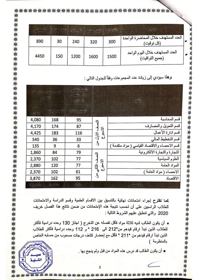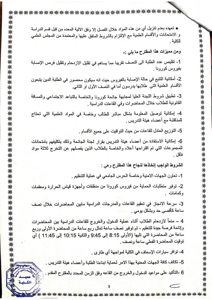 على الطلاب الاستعداد والتنسيق لجداولهم والذي سيعرض بصورته النهائية يوم الغد بإذن الله تعالى وسيتم بعدها الإعلان عن موعد التنزيل وفقا للمقترح المقدم من قبل إدارة الكلية والمعد من قبل لجنة العودة الدراسة بالكلية والذي تم الموافقة عليه من قبل لجنة الوبائيات بالجامعة.