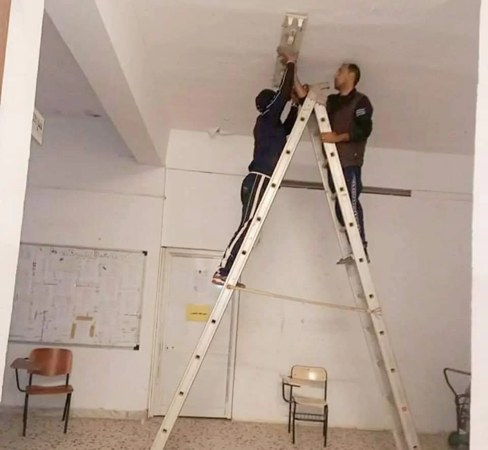 استمرار أعمال الصيانة لشبكة الكهرباء وتصليح أعطاب الكوابل في القاطع العلوي الثالث لمبنى الكلية بممراته وقاعاته، على اليوم الثاني على التوالي، بفضل المجهودات الذاتية وبسواعد الكادر الوظيفي للكلية، مجهودات تُذكر فوجَبَ أن تُشكر. أعانهم المولى على عملهم وبارك لهم فيه وأثقل به ميزانهم في الخير. حفظ الله