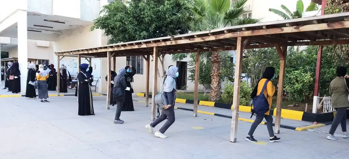استقبلت كلية التربية/ طرابلس يوم الأحد الماضي الموافق: 1/11/2020 عدد ( 455) طالبة من طلبة الشهادة الثانوية من بعض مدارس بلدية سوق الجمعة: مدرسة أم المؤمنين، مدرسة بشير الأسطى، مدرسة مختار بلحاج، مدرسة نيل الأوطار ومدرسة أنوار التوفيق، لاجراء امتحانات الدور الأول للشهادة الثانوية والتي ستتم على مدار ثلاث أسابيع داخل الكلية تبعآ للاجراءات الاحترازية لأزمة فيروس كورونا.