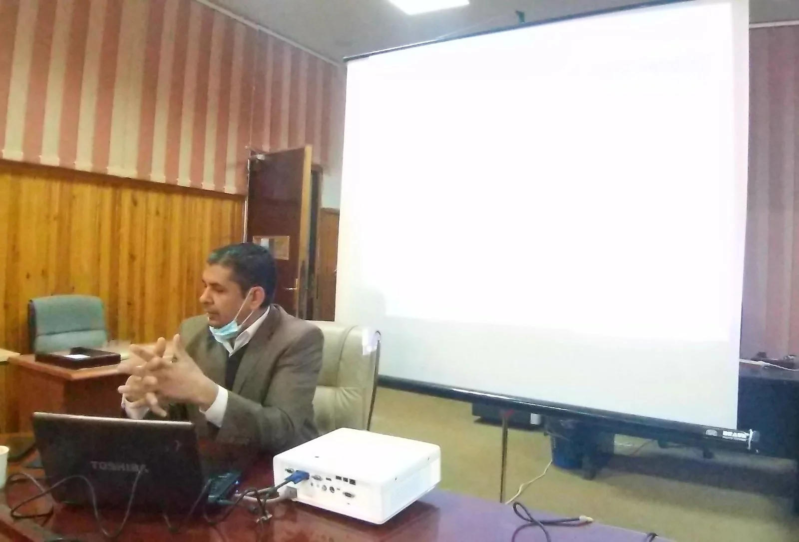 تفضّل أ. أسامة بتوضيح أبرز النقاط التي تتعلق بألية عمل الموقع بداية بكيفية دخول الموقع وصلاحية استخدامه من قبل كل مسؤول تم تكليفه من إدارة الكلية، وأسهب في توضيح ألية العمل لمنسقي التوثيق فيما يخص نشر كل ما يتعلق بأقسامهم العلمية.
