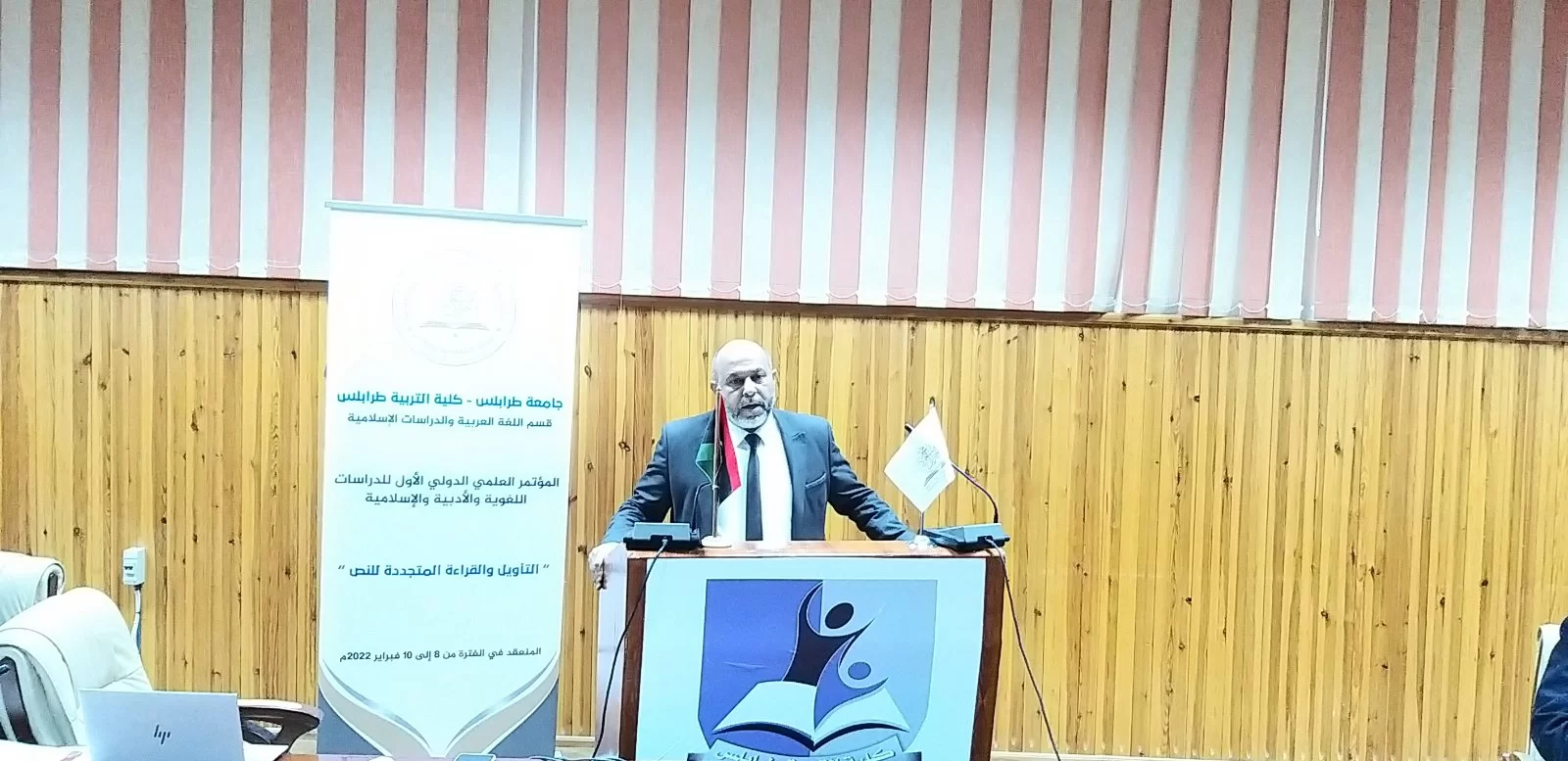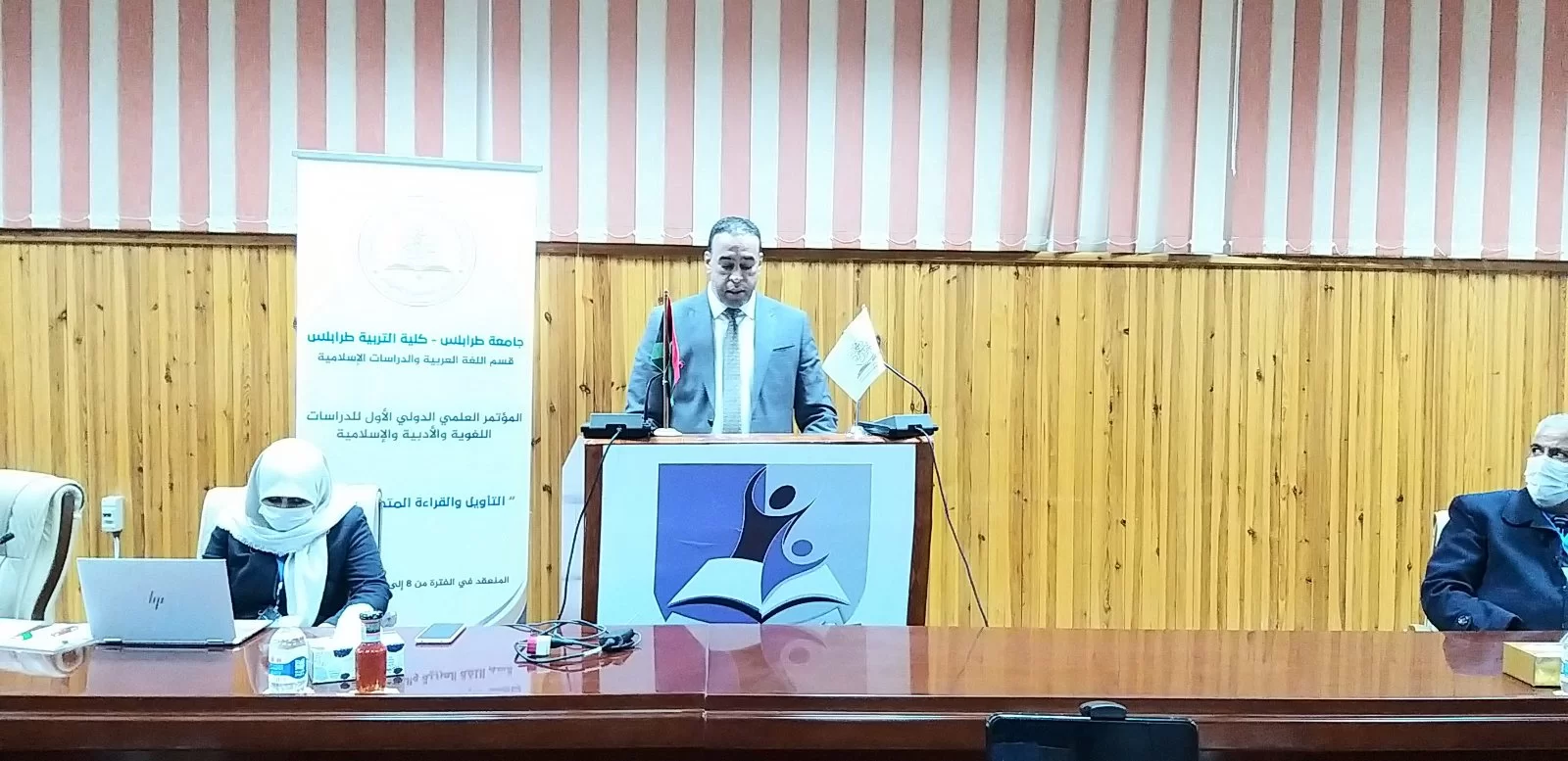 نظّم قسم اللغة العربية والدراسات الإسلامية بكلية التربية- طرابلس مؤتمرًا علميًا دوليًا للدراسات اللغوية والأدبية والإسلامية تحت عنوان "التأويل والقراءة المتجددة للنص" شعاره ( لغتنا فخرنا واعتزازنا) على مدار ثلاثة أيام في الفترة 8-9-10 من الشهر الجاري وأُديرت جلساته إفتراضيًا عبر تقنية zoom