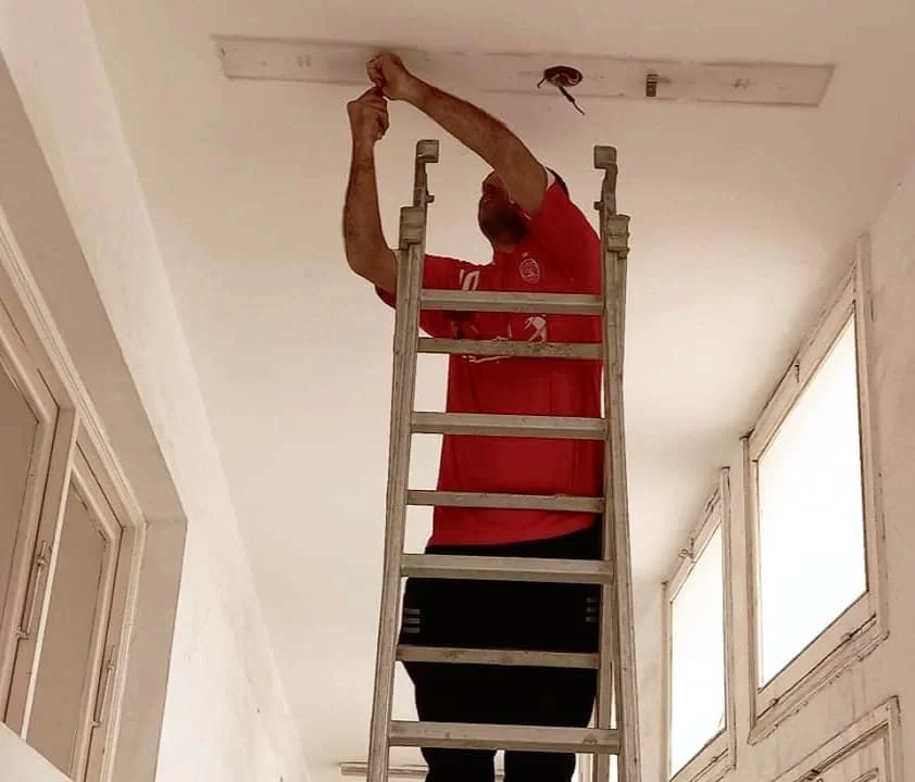 استمرار أعمال صيانة الشبكة الكهربائية داخل مبنى الكلية