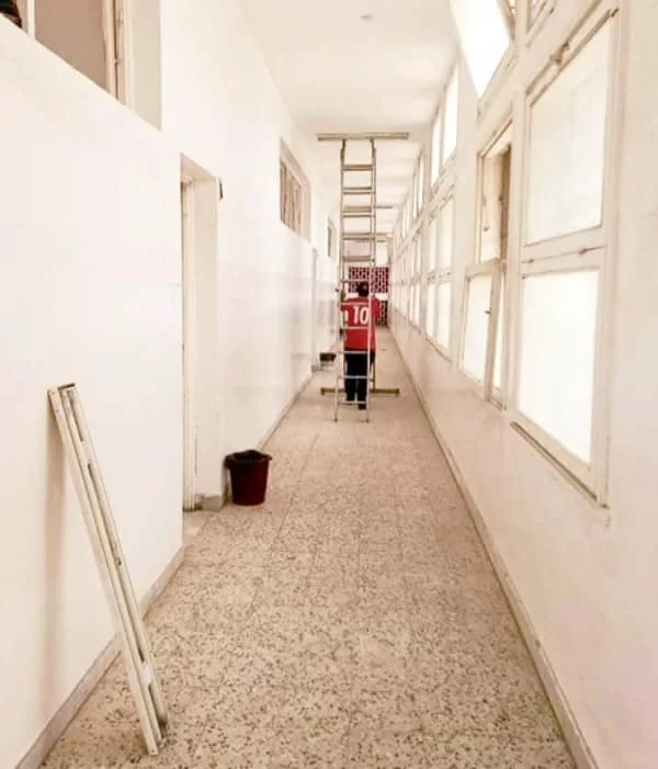 استمرت أعمال الصيانة داخل مبنى الكلية حتى خلال أيام عيد الفطر المبارك، ونظرًا لحجم العمل الضخم الذي يتطلّب وقتًا ومجهودًا كبيرين لاتمامه ستستمر أعمال الصيانة بعون الله الأيام القادمة خلال الفترة المسائية ليتم إصلاح كل الأعطاب في الشبكة الكهربائية لجميع مرافق المبنى. سيقوم عاملي مكتب الخدمات بالكلية بإشراف وتوجيهات السيد: محمد أغا بحملة تنظيف شاملة للمبنى هذا اليوم استعدادًا لفتح أبواب الكلية #للعودة_للدراسة التي ستنطلق من جديد بعون الله يوم الغد السبت، الموافق: 7/ 5/ 2022 م. تثني إدارة الكلية على المجهودات الذاتية التي يبذلها كوادرنا لتحسين مظهر الكلية وتطوير مرافقها لتسهيل سير العملية التعليمية داخل الكلية، وتُبارك عملهم الدؤوب وتتقدم لهم بجزيل الشكر والتقدير على كل مابذلوه من جهد ووقت لصالح الكلية.عودٌ حميدٌ وكل عام والجميع بخير، نسأل الله لطلابنا فصلًا دراسيًا مُكللًا بالتوفيق والنجاح.. مكتب المعلومات والتوثيق