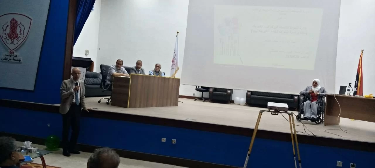 وهي طالبة من ذوي الاحتياجات الخاصة (ذوي الهمة) من قسم الإدارة الهندسية بإشراف الدكتور ميلاد الطاهر اليوم الثلاثاء الموافق 31/5/2022 بمسرح كلية الهندسة هذا وقد حضر المناقشة كل من السيد رئيس الجامعة والسادة من وزارة التعليم إدارة ذوي الاحتياجات الخاصة وحضور عميد ووكيل الشؤون العلمية لكلية وعميد ووكيل الشؤون العلمية لكلية العلوم وعدد من الضيوف من الجامعة وأعضاء هيئة التدريس بالكلية تشجيعاً للطلاب من ذوي الهمة للمثابرة والتعلم وتحقيق النجاح.