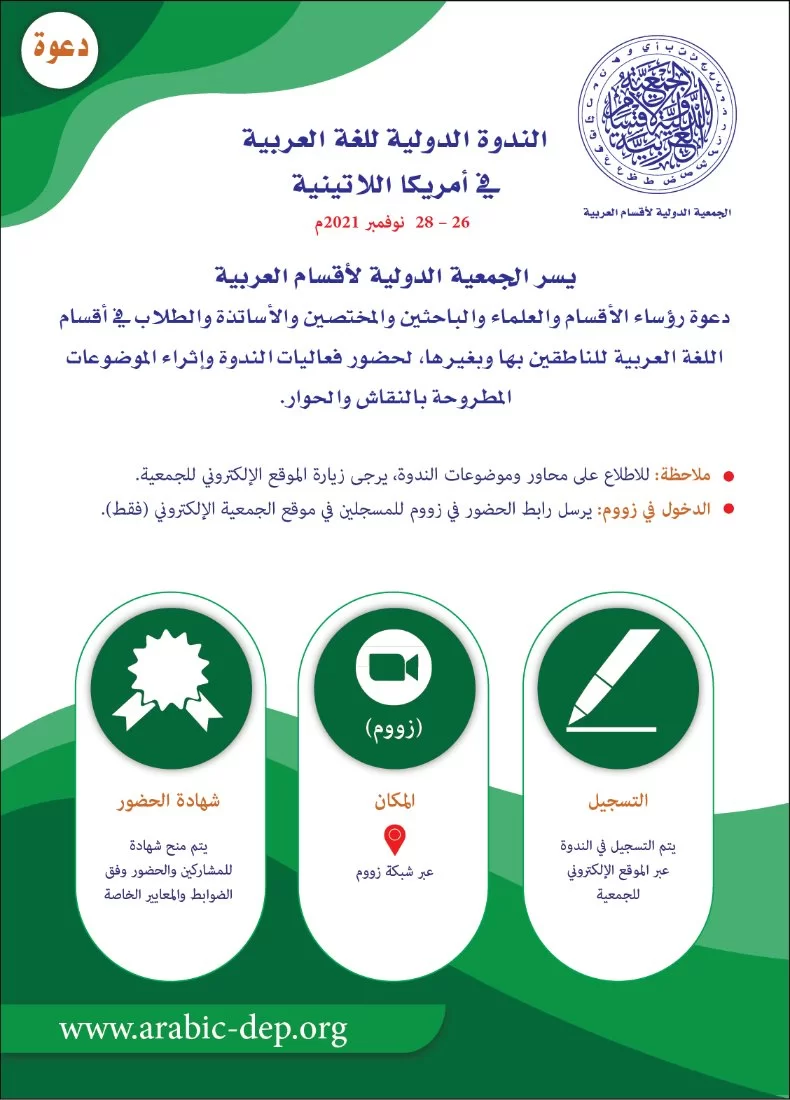 دعوة للمشاركة في الندوة الدولية للغة العربية في أمريكا اللاتينية