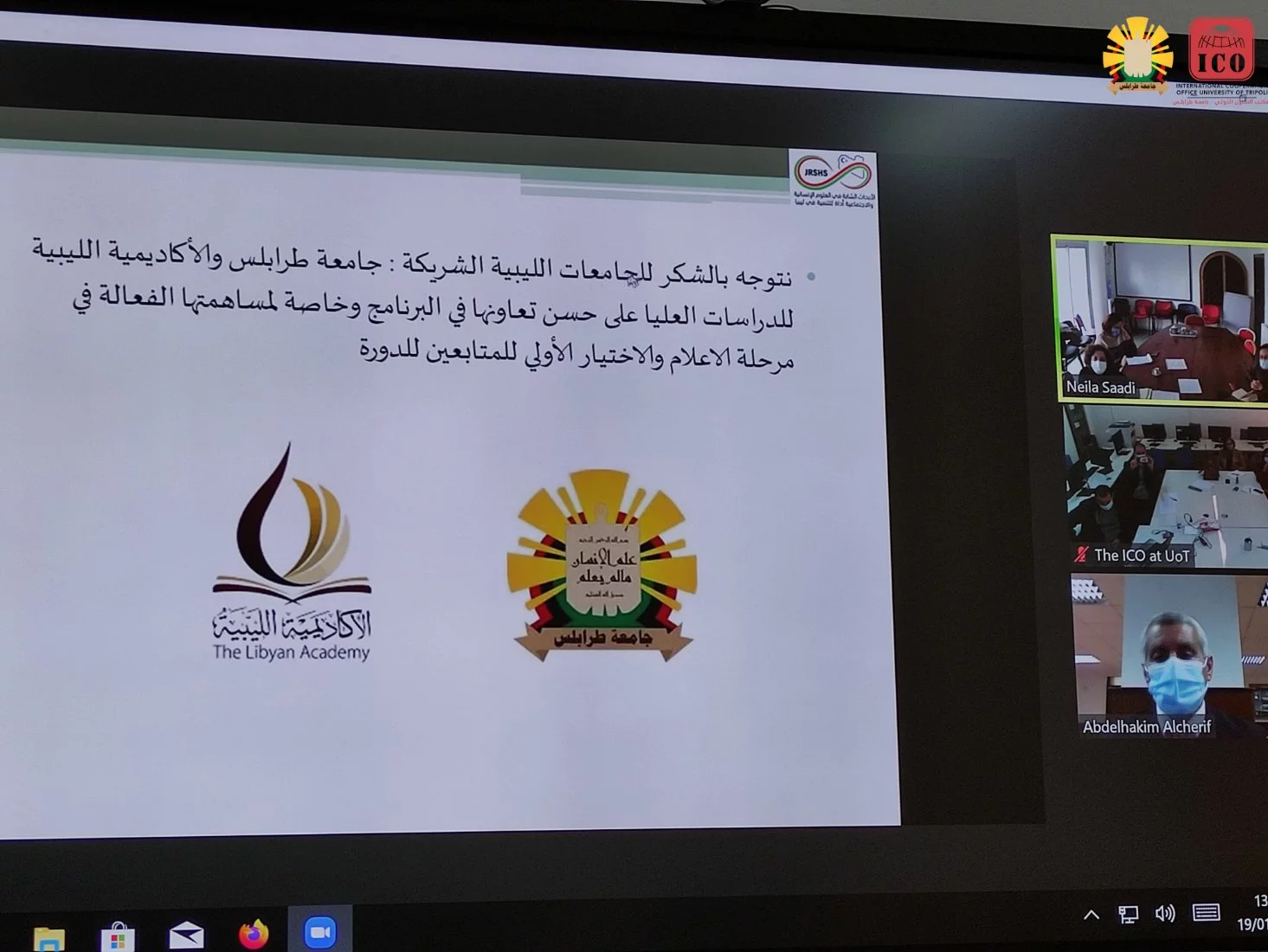 عقد مساء اليوم الثلاثاء التاسع عشر من يناير 2021 م أجتماعا لاطلاق الدورة التدريبية عن بعد بعنوان " مناهج البحث في العلوم الانسانية والاجتماعية" والتى تشرف على تنفيذها معهد البحوث المغاربية المعاصرة بالتعاون مع جامعة طرابلس و الاكاديمية الليبية طرابلس.