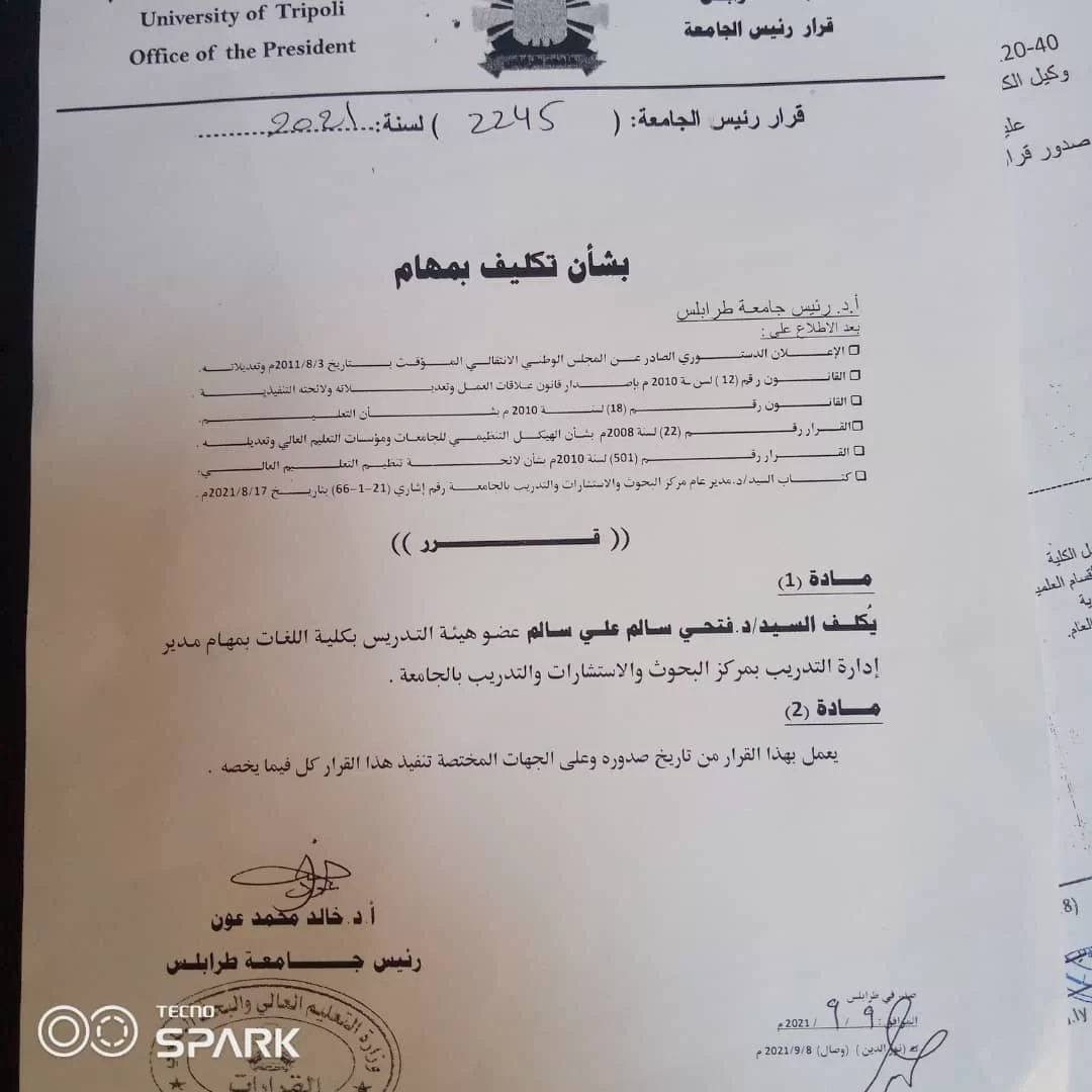 نبارك لزميلنا السيد د. فتحي سالم ترفاس لتكليفيه بمهام مدير إدارة التدريب بمركز البحوث والاستشارات بالجامعة، سائلين الله له التوفيق والسداد.عمادة الكلية