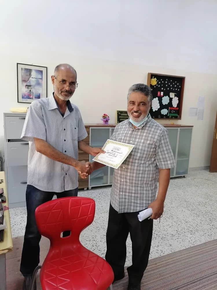 السبت 9 اكتوبر 2021 - في لفتة تقديرية متميزة وفريدة، قام رئيس قسم اللغة الإنجليزية بكلية اللغات الدكتور/حمزة الثلب رفقة الأستاد محمد عاشور رئيس وحدة الدراسة والامتحانات بالقسم بتكريم لفيف من أعضاء هيئة التدريس اللذين كانت لهم بصمة فا