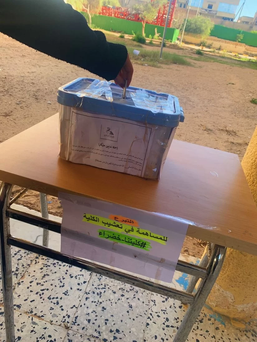 تم بعون الله اطلاق حملة التبرع من اجل تحسين المظهر العام للكلية، والتي ستكون أولى مراحلها تعشيب المربعات، وستعقبها مراحل اخرى إن شاء الله. اللجنة المشرفة