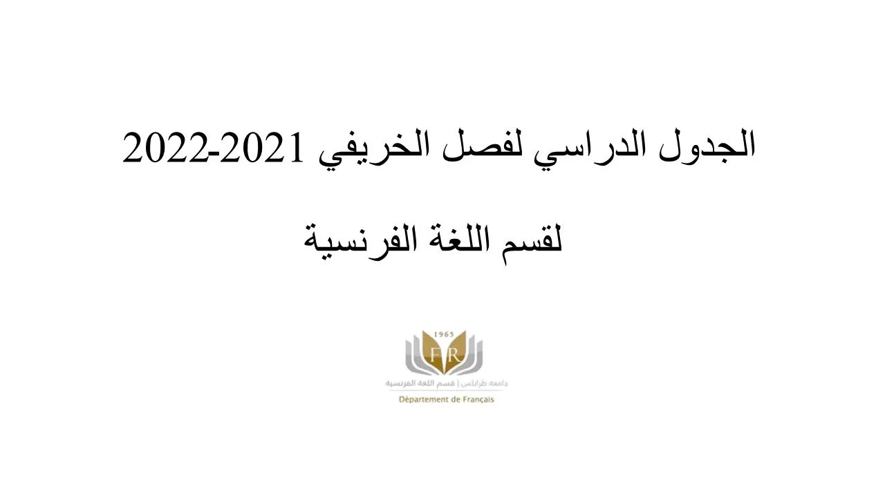 الجدول الدراسي لفصل الخريف 2022/2021 لقسم اللغة الفرنسية