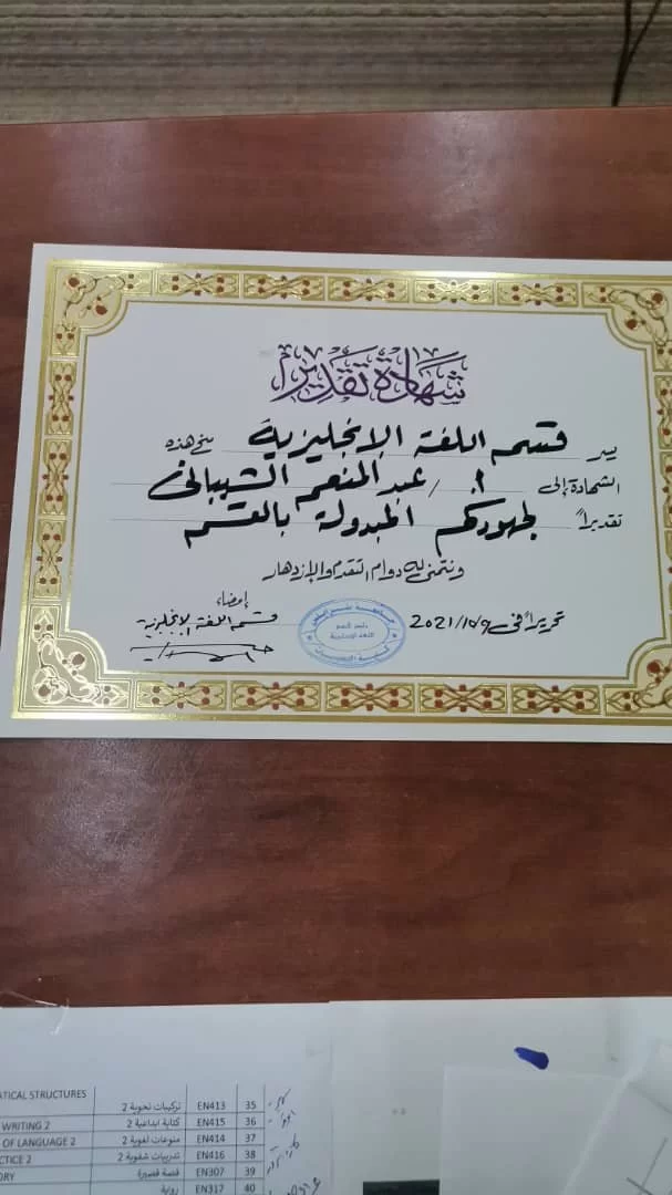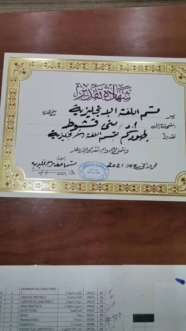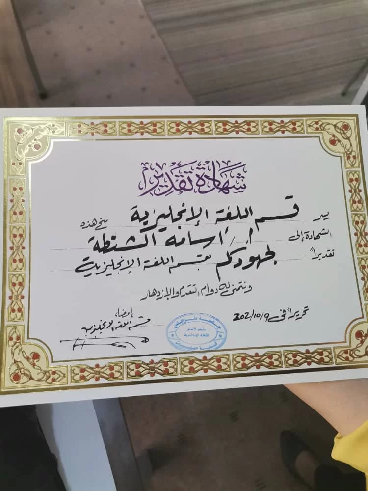 قسم اللغة الإنجليزية - تكريــــم وتقديـــر