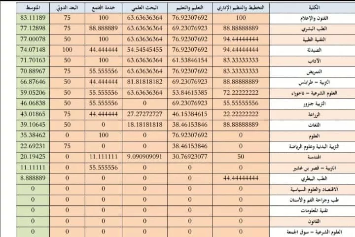نسبة استيفاء متطلبات التصنيف للكليات بجامعة طرابلس