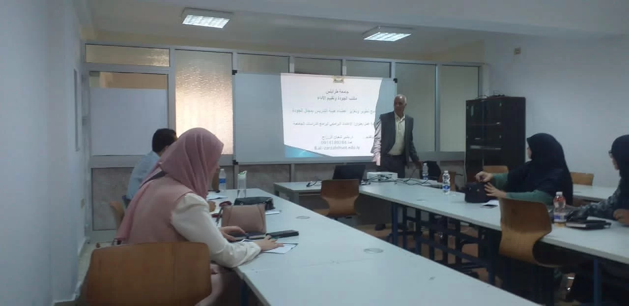 من اجل إستكمال كلية الصيدلة اعتمادها المؤسسي والبرامجي قام مكتب الجودة وتقييم الاداء بالجامعة باقامة ورشة عمل لكلية الصيدلة حول المعايير والمؤشرات الاساسية للحصول على الاعتماد البرامجي وذلك بقاعة مكتب الجودة وتقييم الاداء بالجامعة
