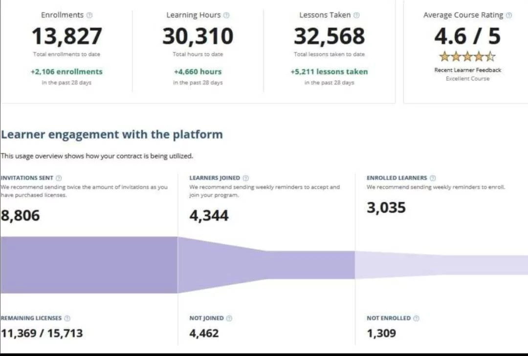 احصائية جديدة للمشاركين فى المنصة التعليمية University of Tripoli on Cousera السلام عليكم ورحمة الله وبركاتهتجدون ادناه احصائية جديدة لمشاركة اعضاء هيئة التدريس وطلبة جامعة طرابلس فى المنصة التعليمية University of Tripoli on Cousera، يمكن عرض أهم النتائج: • عدد المسجلين فعليا للمنصة التعليمية 4332