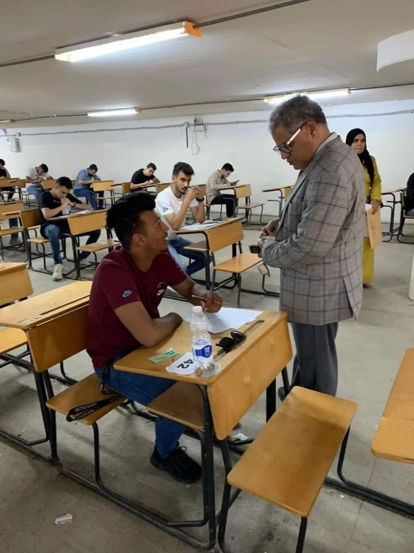 في اطار اهتمام السيد ا.د.رمضان الجدي عميد الكلية ورئيس اللجنة العليا للاشراف على المرحلة التمهيدية بالجامعه ، تابع مساء يوم الاربعاء الموافق 15يونيو 2022م سير الامتحانات النصفية بقاعات الجامعة وقد كان الامتحان لمقرر الاحصاء واستفسر السيد العميد من بعض الطلاب على انطباعهم على نوعية الاسئلة و