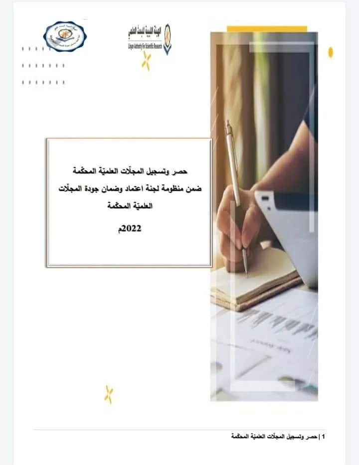 آخر تحديث لحصر وتسجيل للمجلات العلمية المحكمة بمنظومة لجنة اعتماد وضمان جودة المجلات العلمية المحكمة. 11/ 03 / 2022م .* فريق الإعلام بالهيئة الليبية للبحث العلمي *