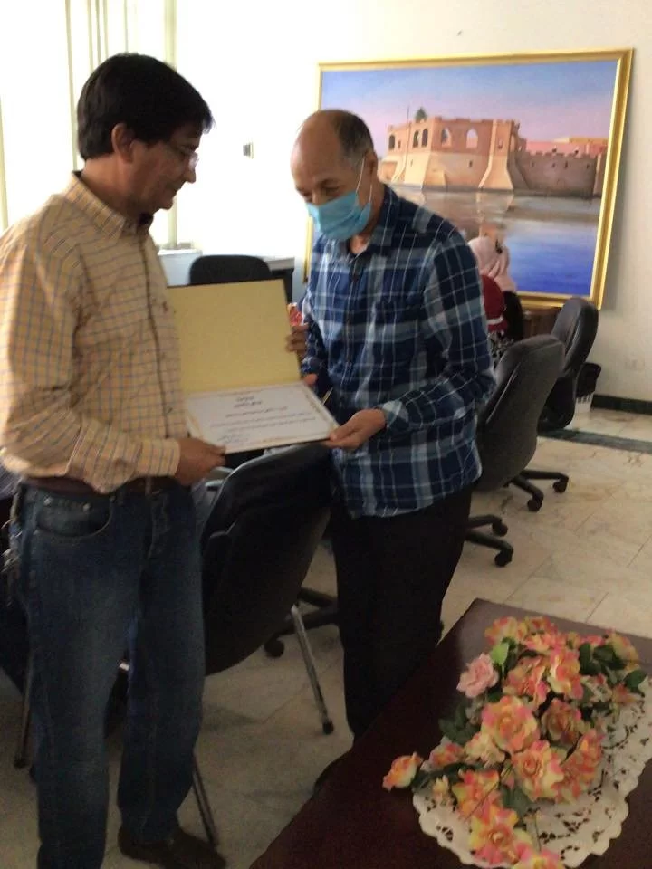 أقيم صباح اليوم الاربعاء الموافق 24/11/2021م بقاعة الاجتماعات بالكلية، مراسم تسليم واستلام مكتب مسجل الكلية بين مسجل الكلية السابق الاستاذ ناجي البوعيشي والمهندسة هاجر زقلام مسجل الكلية الجديد وبحضور كلا من الاستاذ الدكتور ربيعة عمر الغزير وكيل الكلية للشؤون العلمية وأعضاء لجنة الاستلام والتسليم.وبهذه المناسبة تم تكريم المسجل السابق الاستاذ ناجي البوعيشي من طرف الكلية بمنحه شهادة تقدير على ما بذله من جهد خلال فترة توليه مسجل الكلية ومتمنين التوفيق للمهندسة هاجر زقلام في مهمتها الجديدة.عدسة// هشام ابوخبلين