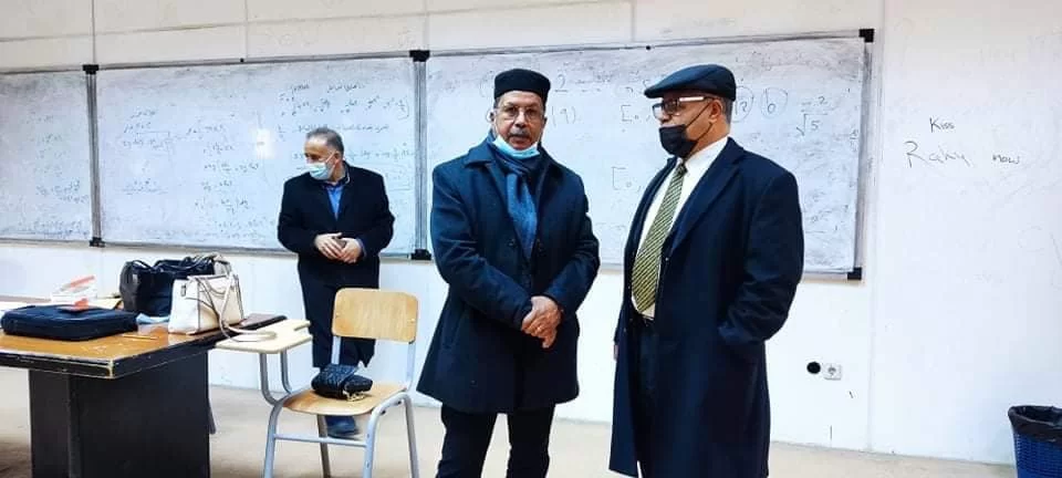 في إطار متابعه الامتحانات النصفيه لطلبه كليه الهندسه لهذا الفصل ( خريف 2021-2022) جرى صباح اليوم السبت الموافق 15/01/2022 امتحان مقرر الرياضيات والذي تقوم بتدريسه كليه العلوم لطلاب قسم الرياضيات . قام السيد عميد كليه العلوم الاستاذ الدكتور / رمضان الجدي وبرفقه السيد عميد كليه الهندسه / الاستاذ الدكتور صالح الصادق بتفقد القاعات والاطمئنان على سير الامتحانات وأوضاع ابناؤنا الطلاب .ولله الحمد كانت الامور على أحسن ما يرام وهذا بفضل الله عز وجل وثم بجهود أساتذه المقرر والمشرفين والمراقبين من كليه الهندسه يسر اسره كليه العلوم أن تتقدم بجزيل الشكر والتقدير لكل اساتذه المقرر والمشرفين والمراقبين ومتمنيه التوفيق والنجاح لكل الطلاب