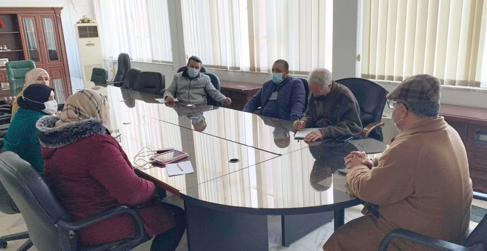عليه عقد السيد أ.د. رمضان الجدي عميد الكلية وبحضور اجتماعا صباح اليوم الثلاثاء الموافق 25/01/2022 وبحضور وكيل الكليه للشؤون العلميه الاستاذه الدكتوره ربيعه الغزير ، مع مكتب التوثيق والمعلومات وحضره السيد مدير المكتب وكافه الاعضاء العاملين به .