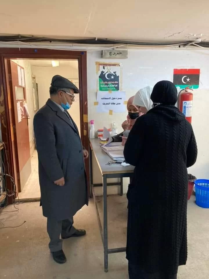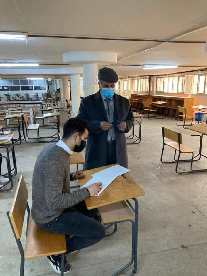تفقد السيد عميد الكليه الاستاذ الدكتور رمضان الجدي والسيده وكيل الكليه للشؤون العلميه الاستاذه الدكتوره ربيعه الغزير صباح اليوم الاحد الموافق 27/02/2022 سير الامتحانات النهائيه التي بدأت على بركه الله صباح اليوم ، بهدف الاطمئنان على توفير جميع عوامل الاستقرار للطلاب وللوقوف والاشراف على تنفيذ جميع تعليمات لجنه السلامه فيما يخص الاجراءات الاحترازيه من حيث التباعد الوقائي وتوفير مستلزمات التعقيم والتطهير لضمان سلامه أبنائنا الطلبه والمشاركين في أعمال الامتحانات من أساتذه ومراقبين خلال فتره الامتحانات واستفسرا من بعض الطلبه الممتحنين عن ادائهم وحثاؤهم على بذل المزيد من الجهد والعطاء من أجل الارتقاء بمستوى مخرجات كليه العلوم وبالتالي جامعه طرابلس .