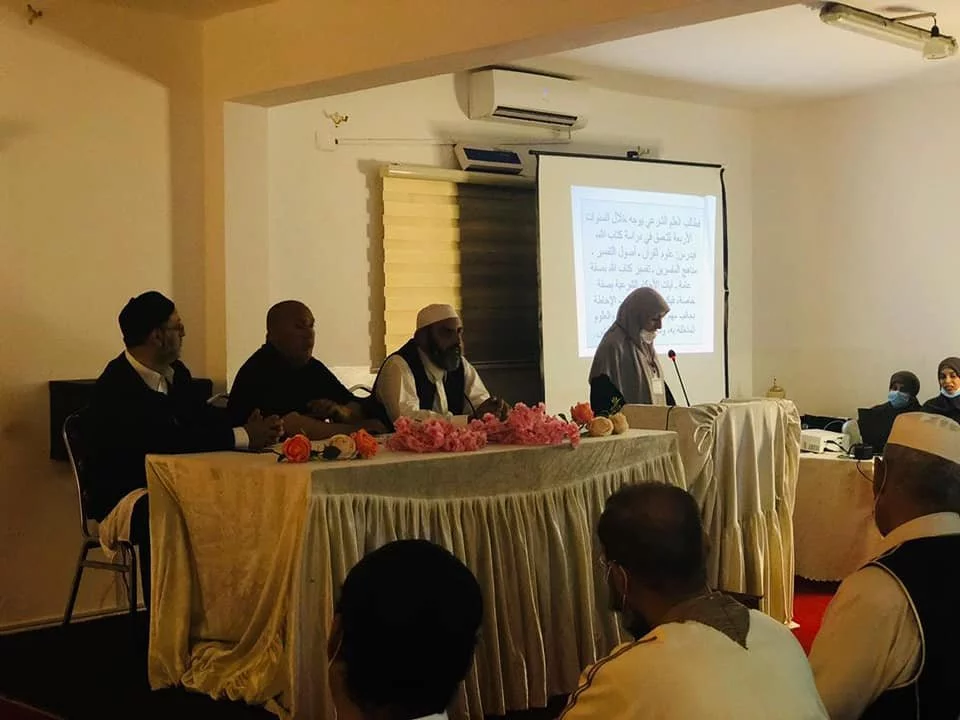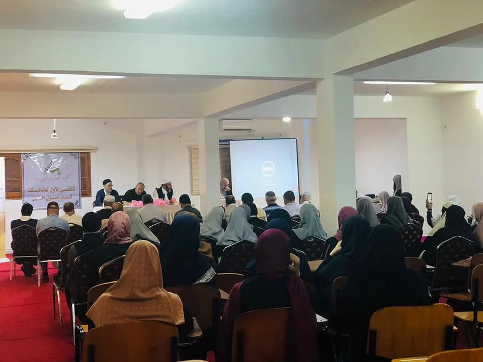 بفضل من الله وتوفيقه عقد اليوم الملتقى الأول لطالبات قسم أصول الدين، وقد افتتح الملتقى بآيات بينات من كتاب الله، ثم تناول الكلمة السيد عميد الكلية د عبد اللطيف العالم، رحب فيها بالحضور الكريم وعلى رأسهم عائلة الشيخ نادر العمراني رحمه الله، وإدارة وطلبة مدرستي 24 ديسمبر وأبي راوي للتعليم الديني، ومدير إدارة الفتوى الشيخ طلال الدريبي ، كذلك ألقى السيد وكيل الكلية د فوزي الغرياني كلمة رحب فيها بالضيوف، تناول بعدها الكلمة رئيس قسم أصول الدين، وقد تناولت الكلمات أهمية تأسيس قسم أصول الدين في الكلية، والفائدة الكبرى المرجوة من تأسيسه، والطموح إلى أن يتحول إلى كلية تضم أقسام عدة، كالتفسير وعلومه والحديث وعلومه والعقيدة. وقد تناول برنامج الملتقى كلمات تعريفية بالقسم وأهمية الدعوى والحاجة إليها في المجتمع المسلم وغير المسلم، كذلك تخلل فقرات الملتقى طرف علمية ومسابقة تحصل فيها الفائزون على جوائز تشجيعية، وقد قامت كلية العلوم الشرعية في هذه الملتقى بتكريم شهيد السنة وكلمة الحق صاحب الفضيلة الشيخ الدكتور نادر السنوسي العمراني رحمه الله ، كما كرمت كلا من: مدرسة 24 ديسمبر للتعليم الثانوي لمشاركتهم في الملتقى، و مدرسة أبي راوي للتعليم الديني، ومديرها السابق الأستاذ محمود السريتي، وفي مبادرة من مجلس القسم تم تكريم بعض طالبات القسم اللاتي أشرفن على الملتقى وأظهرنه بشكل أثار إعجابا وتقديرا كبيرين من جميع الحاضرين.