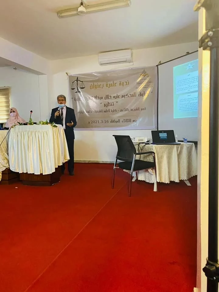 من نشاطات قسم الشريعة والقانون : ندوة بعنوان "حقوق المحكوم عليه خلال مرحلة تنفيذ العقوبة"