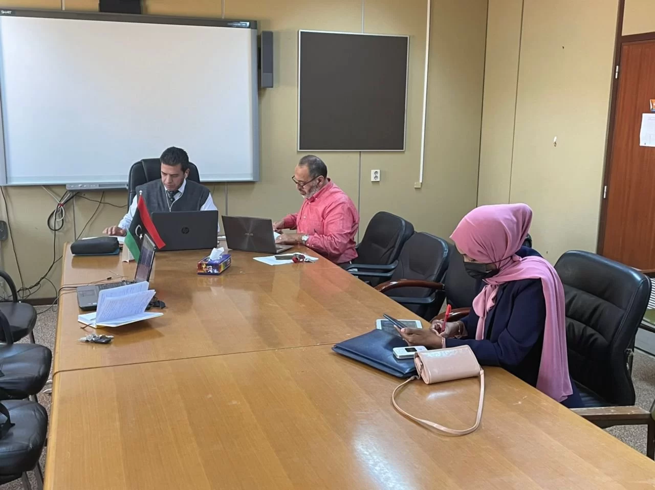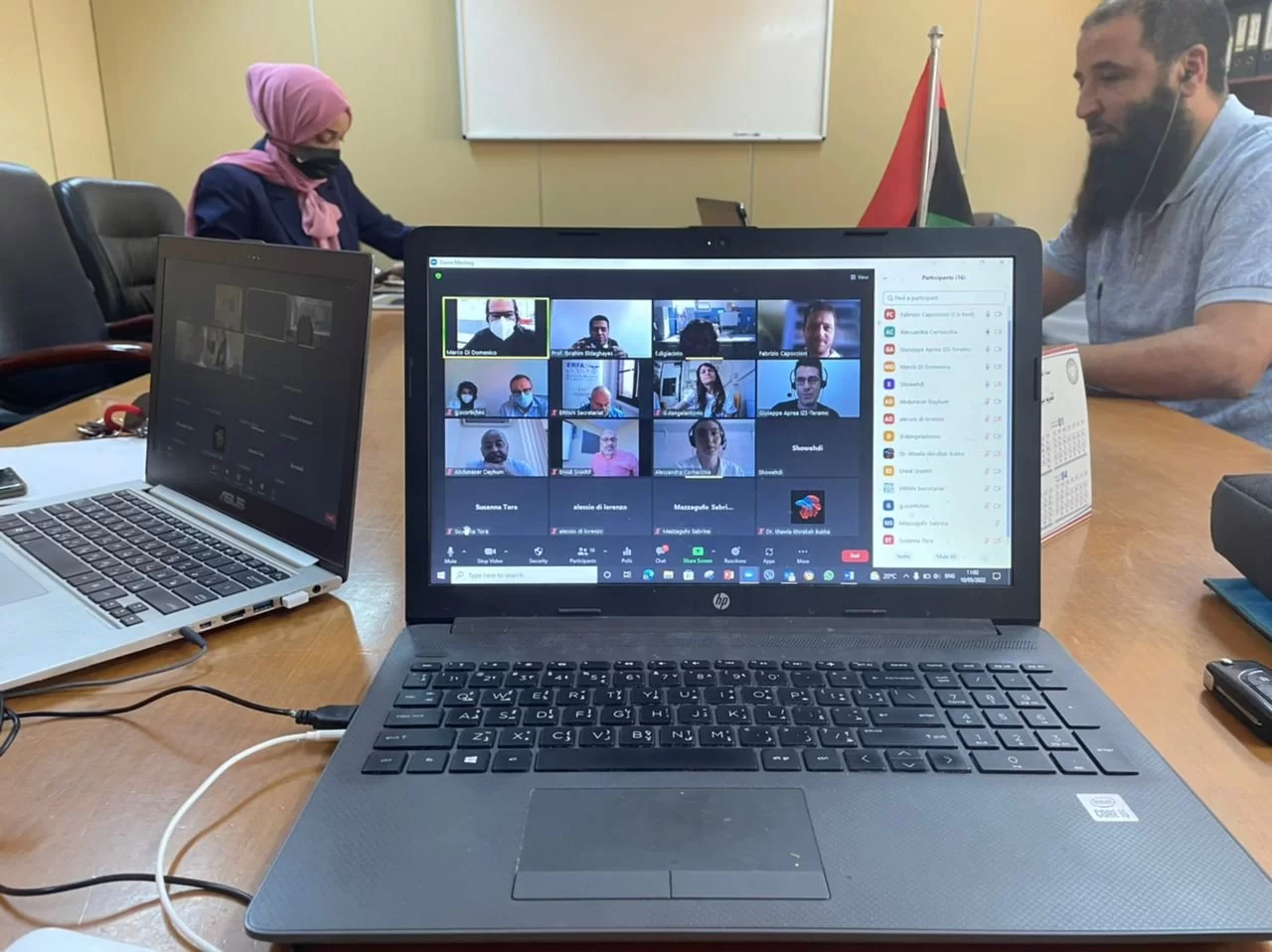عقد صباح اليوم الثلاثاء الموافق 10.5.2022 بقاعة الإجتماعات بكلية الطب البيطري بجامعة طرابلس الإجتماع الأول بين الفريق البحثي المشكل من مجموعة من أعضاء هيئة التدريس بقسم أمراض الدواجن والأسماك وقسم الأحياء الدقيقة والطفيليات مع فريق من الخبراء من مختلف التخصصات من إيطاليا و المختبر المرجعي بمدينة تيرامو الإيطالية وذلك عبر إستخدام تقنية الزووم.